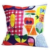 北欧フィンランドの国民的人気ブランド【マリメッコ】のクッションカバーです。柄はアイノ-マイヤ・メトソラ デザインの「ケサトリ」。サマーマーケットという意味があるそうです。リンゴやサクランボなどかわいらしいフルーツや、ちょうちょなど が描かれています。夏の市場をイメージしたようなとってもかわいい柄です。